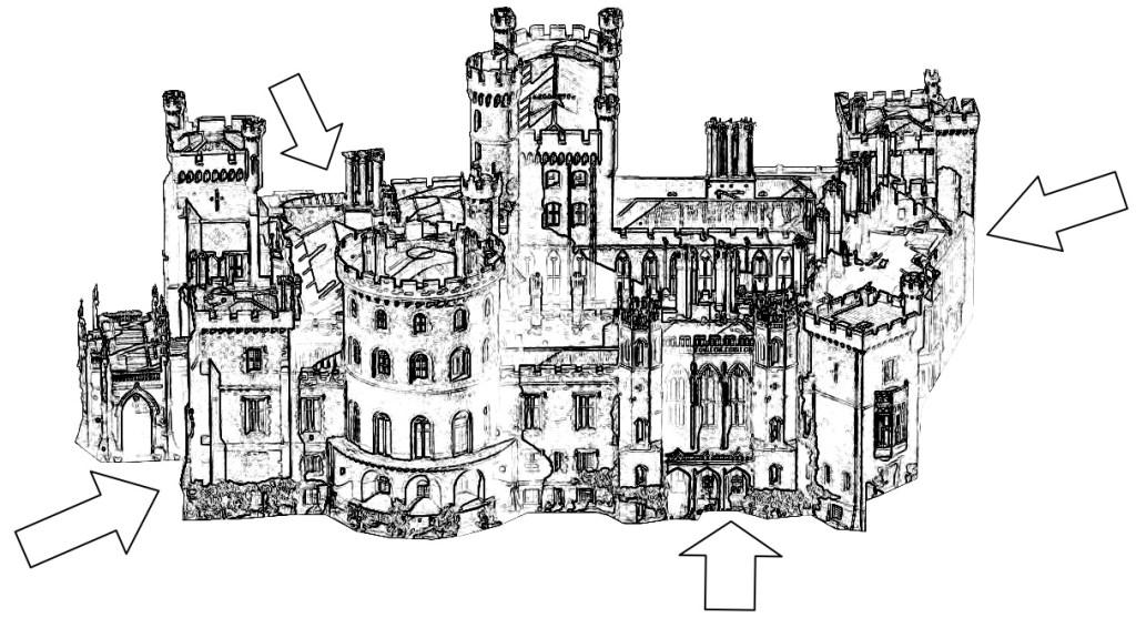 Och på det sättet är det med det här slottet. Det finns massor av ingångar, och vi kan välja vilken som helst. Innanför varje ingång finns olika rum som inreds med olika typer av kunnande. Och när du går omkring i, utforskar och inreder ditt ”gestaltningsslott” kommer du att upptäcka att många rum hör ihop, ibland smälter ihop till ett stort och ibland delas upp i flera små. Du kanske upptäcker ett rum som saknas och då bygger du till det på en plats som du tycker passar.